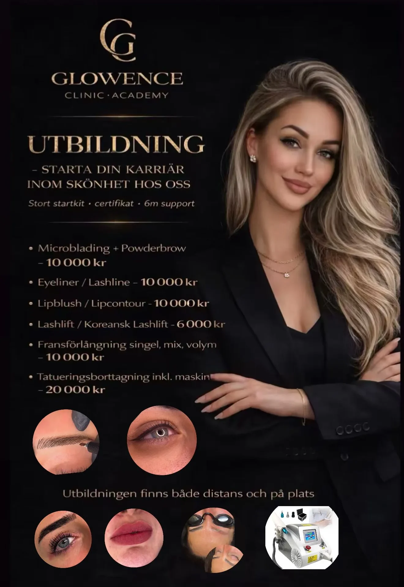 Glowence Clinic erbjuder professionella behandlingar och certifierade utbildningar inom skönhet och kosmetisk pigmentering.